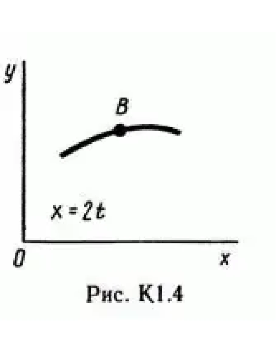 Точка В движется в плоскости xy (рис. К1.0 — К 1.9, табл. К1; траектория точки на рисунках показана условно). Закон движения точки задается уравнениями: x = f1(t), y = f2, где x и y выражены в сантиметрах, t — в секундах.