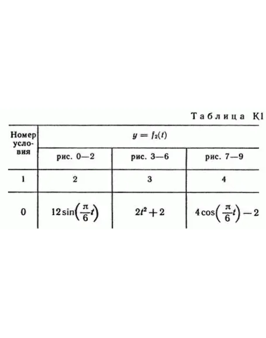 Зависимость x = f1(t) указана непосредственно на рисунках, а зависимость y = f2 дана в табл. K1 (для рис. 0—2 в столбце 2, для рис. 3—6 в столбце 3, для рис. 7—9 в стол