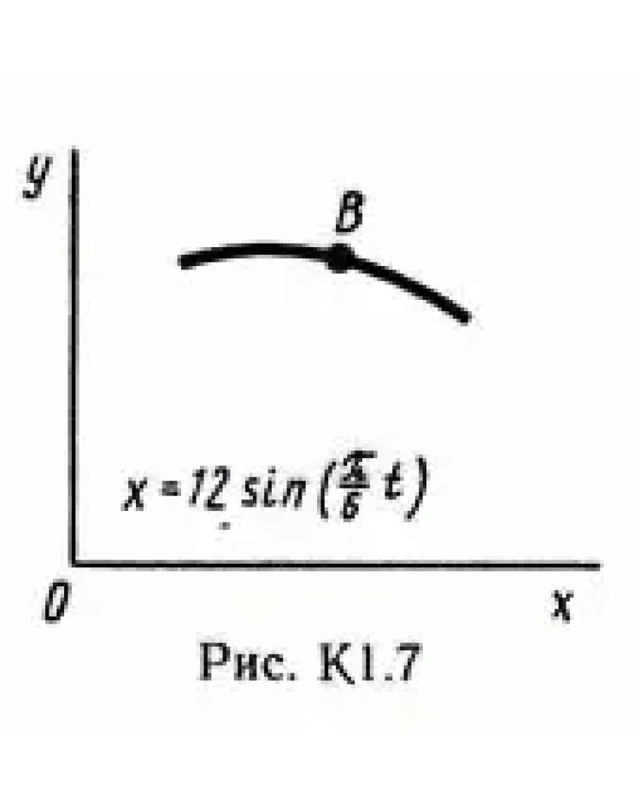 Точка В движется в плоскости xy (рис. К1.0 — К 1.9, табл. К1; траектория точки на рисунках показана условно). Закон движения точки задается уравнениями: x = f1(t), y = f2, где x и y выражены в сантиметрах, t — в секундах.