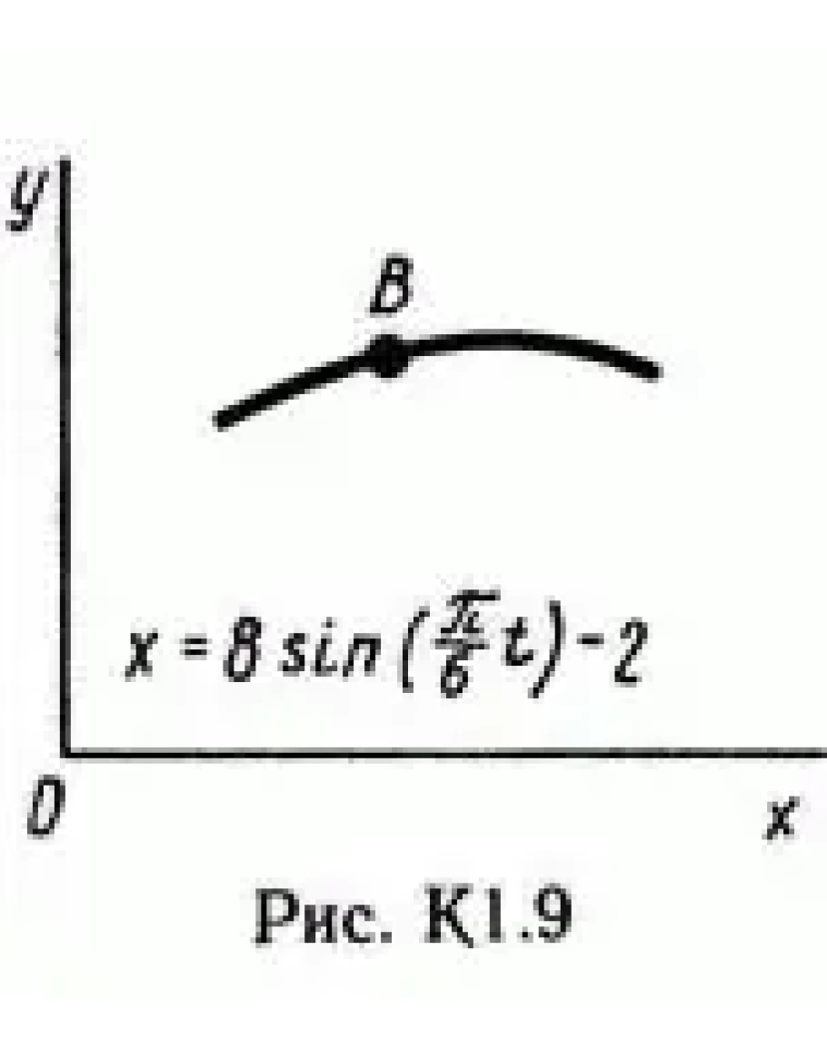 Точка В движется в плоскости xy (рис. К1.0 — К 1.9, табл. К1; траектория точки на рисунках показана условно). Закон движения точки задается уравнениями: x = f1(t), y = f2, где x и y выражены в сантиметрах, t — в секундах.