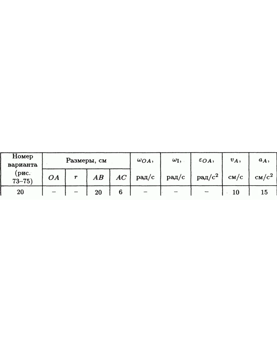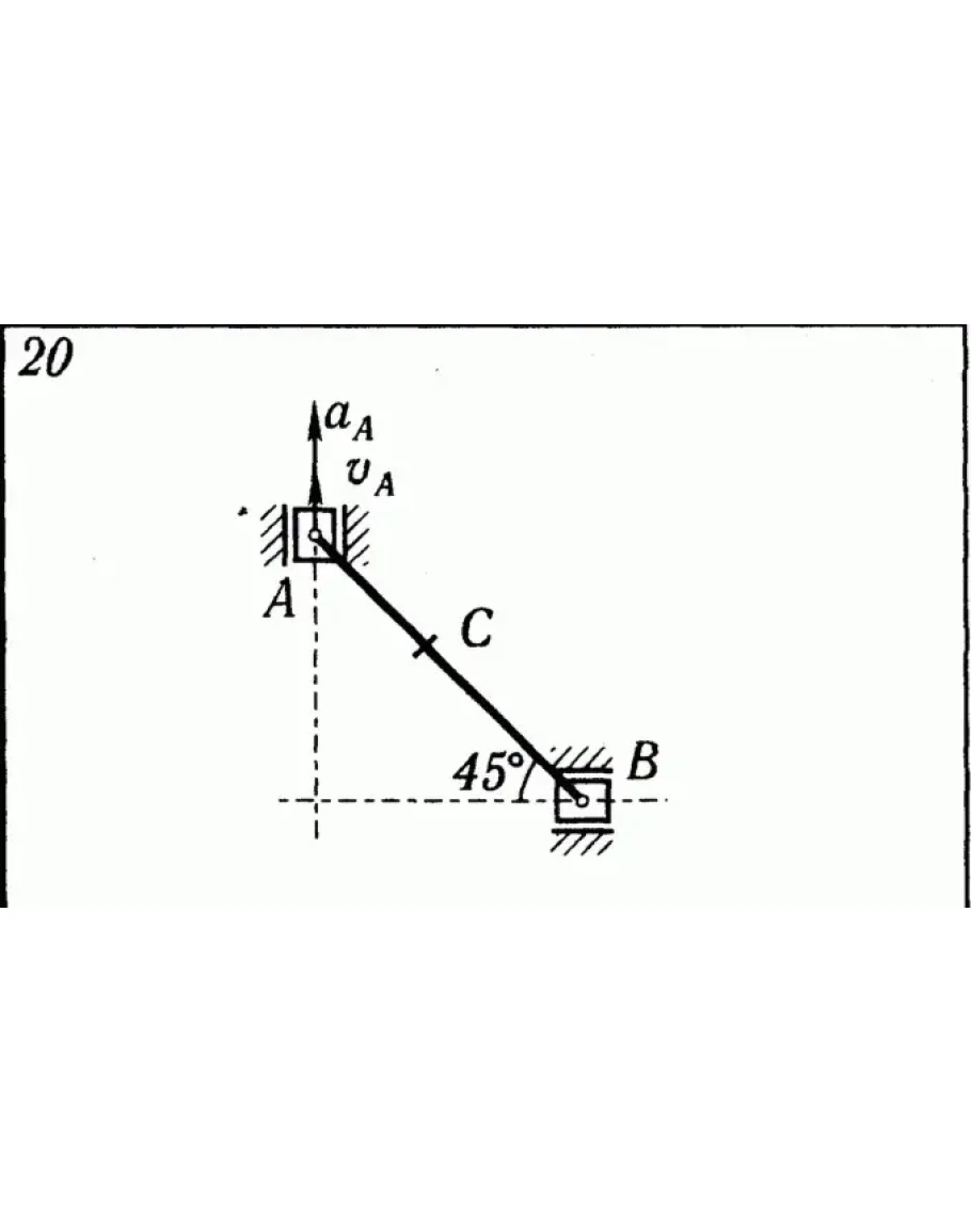 Решение задачи К5 Вариант 20 из решебника по теоретической механике Яблонский А.А. 1978 г., на тему: К5 Определение скоростей и ускорении точек твердого тела при плоском движении (стр. 99).
