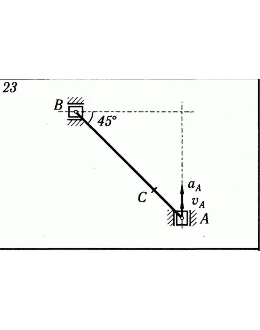 Решение задачи К5 Вариант 23 из решебника по теоретической механике Яблонский А.А. 1978 г., на тему: К5 Определение скоростей и ускорении точек твердого тела при плоском движении (стр. 99).