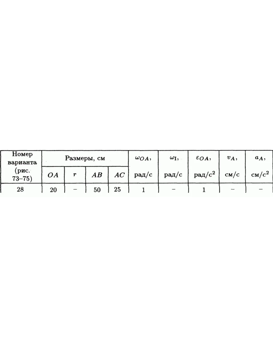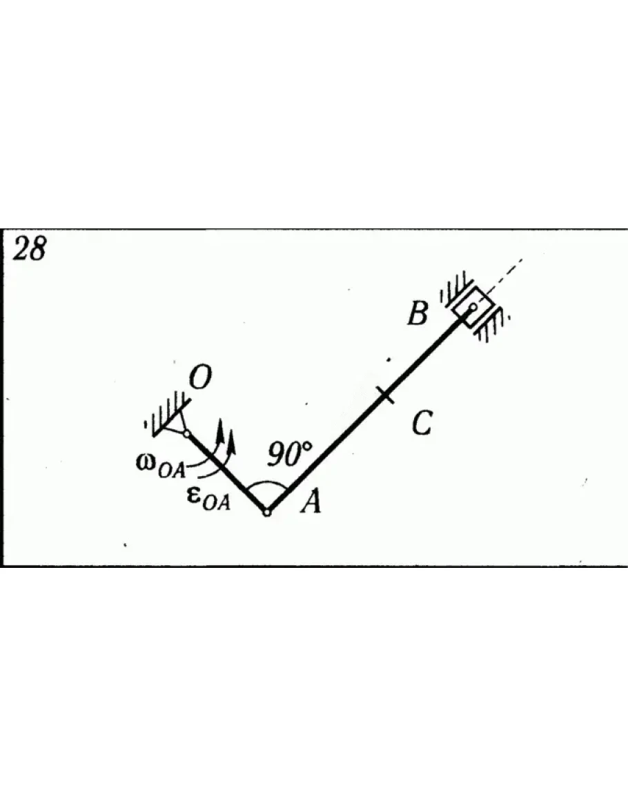 Решение задачи К5 Вариант 28 из решебника по теоретической механике Яблонский А.А. 1978 г., на тему: К5 Определение скоростей и ускорении точек твердого тела при плоском движении (стр. 99).