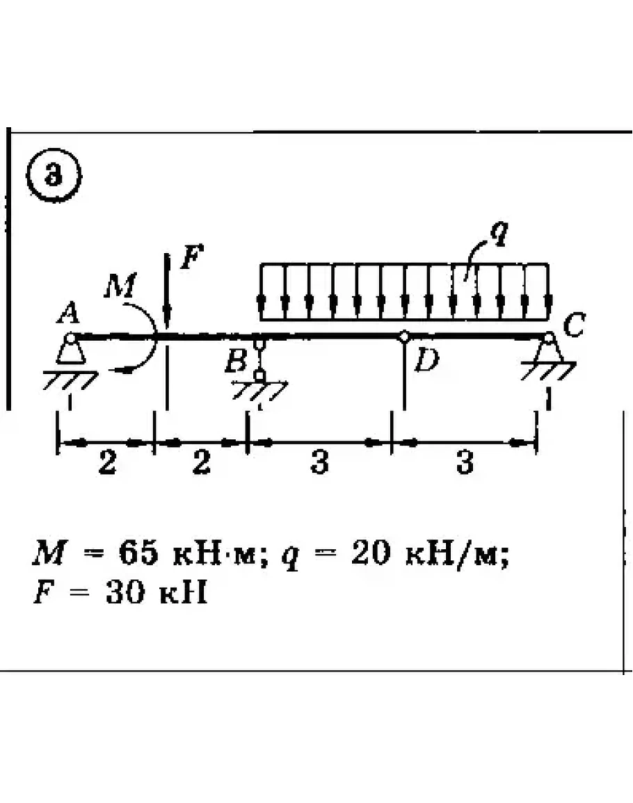 Для представленных на схемах 1-30 составных конструкций найти реакции опор. Размеры указаны в метрах. Весом элементов конструкций пренебречь.