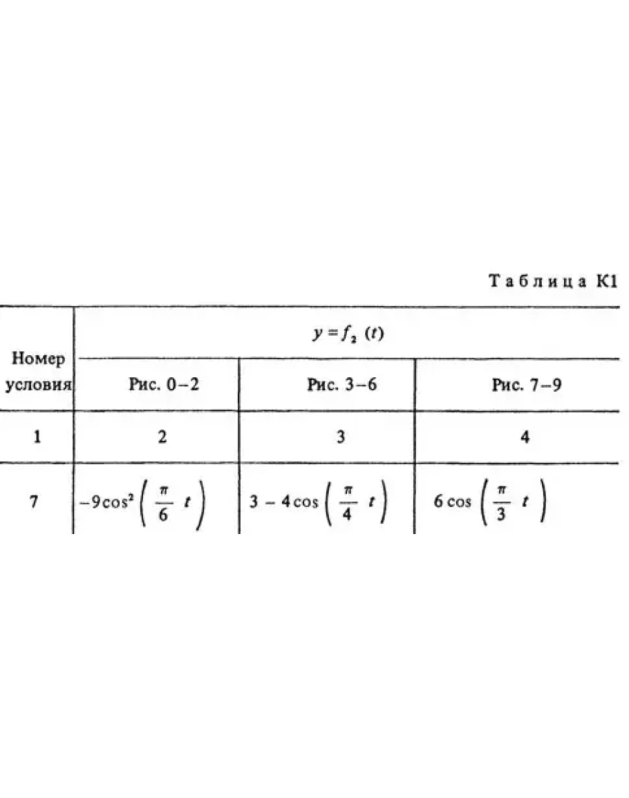 Зависимость x = f1(t) указана непосредственно на рисунках, а зависимость y = f2(t) дана в табл. К1 (для рис. 0-2 в столбце 2, для рис. 3-6 в столбце 3, для рис. 7-9 в столбце 4).