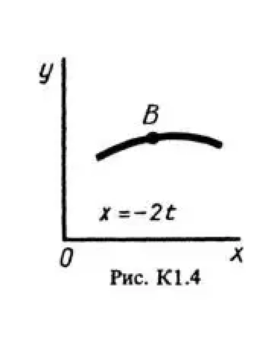 Точка B движется в плоскости xy (рис. К1.0-К1.9, табл. К1; траектория точки на рисунках показана условно). Закон движения точки задан уравнениями: x = f1(t), y = f2(t), где x и y выражены в сантиметрах, t – в секундах.