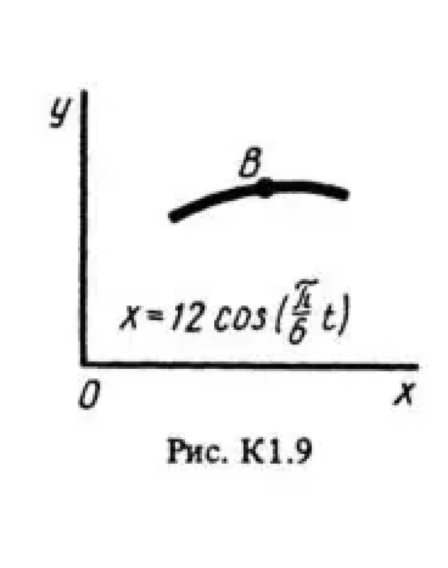 Точка B движется в плоскости xy (рис. К1.0-К1.9, табл. К1; траектория точки на рисунках показана условно). Закон движения точки задан уравнениями: x = f1(t), y = f2(t), где x и y выражены в сантиметрах, t – в секундах.