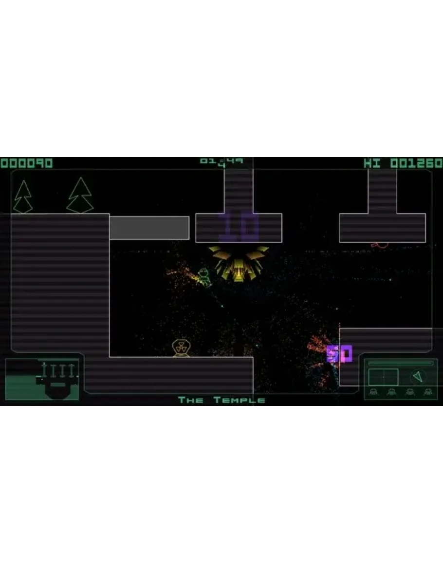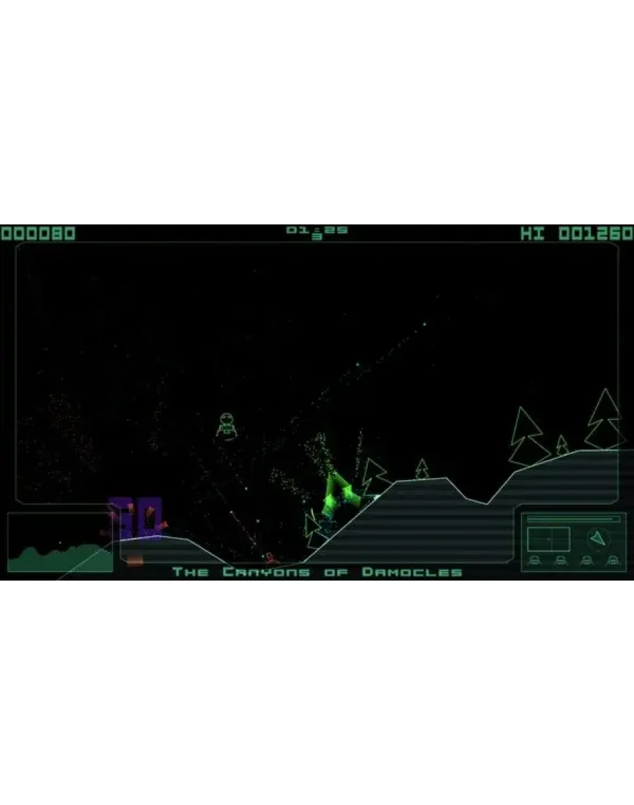 Navigate the player to the landing pad through twenty increasingly difficult levels within the time limit and with enough fuel. Movement or firing uses up fuel though levels can be replenished by shooting the fuel dumps. Running out of fuel means you loose control and can't fire. If all fuel dumps are destroyed on any given level the player's fuel tank capacity is doubled for the next level (this does not apply to starting from the highest level reached).
