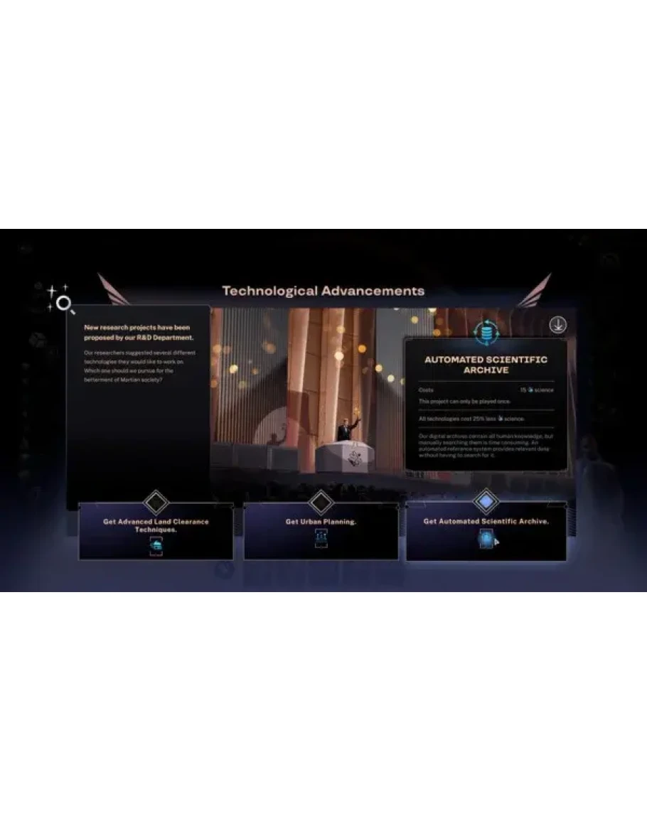 Отправляйте руководителей экспедиции исследовать таинственные территории Красной планеты и открывайте богатые месторождения ресурсов, гигантские пещеры, полные кристаллов, и другие чудеса природы.