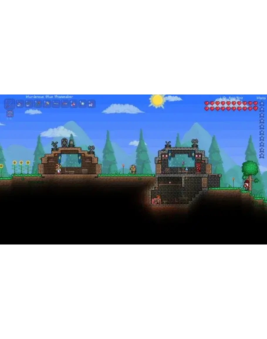 Хватайте инструменты и вперед! Создавайте оружие, чтобы сражаться с различными врагами в разных биомах. Копайте глубже, чтобы найти драгоценности, деньги и кучу других полезных вещей. Собирайте ресурсы, чтобы создать всё, что вам нужно, и сделать мир таким, каким вы хотите его видеть. Постройте свой дом, крепость или даже замок! Люди переедут к вам жить и может быть даже продадут вам вещи, которые помогут вам в ваших путешествиях.