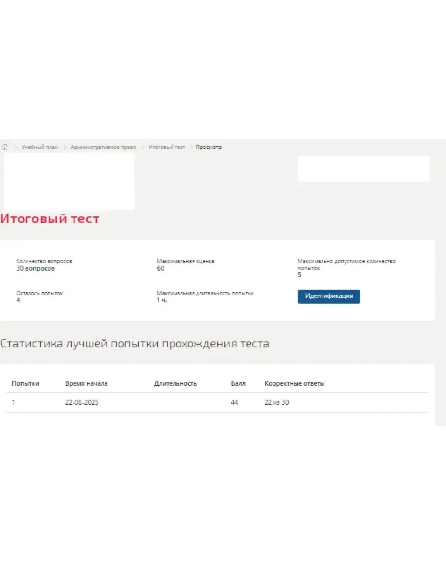 Сдано в 2025г. Верно 22 из 30 вопросов. Скриншот с отметкой прилагается к работе.