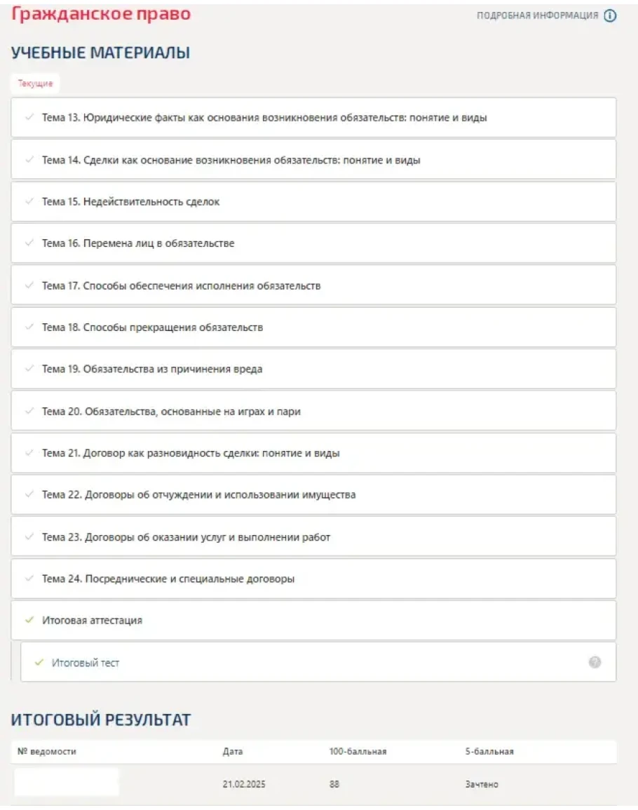 Гражданское право.Итоговый тест Синергия/МТИ 2025г