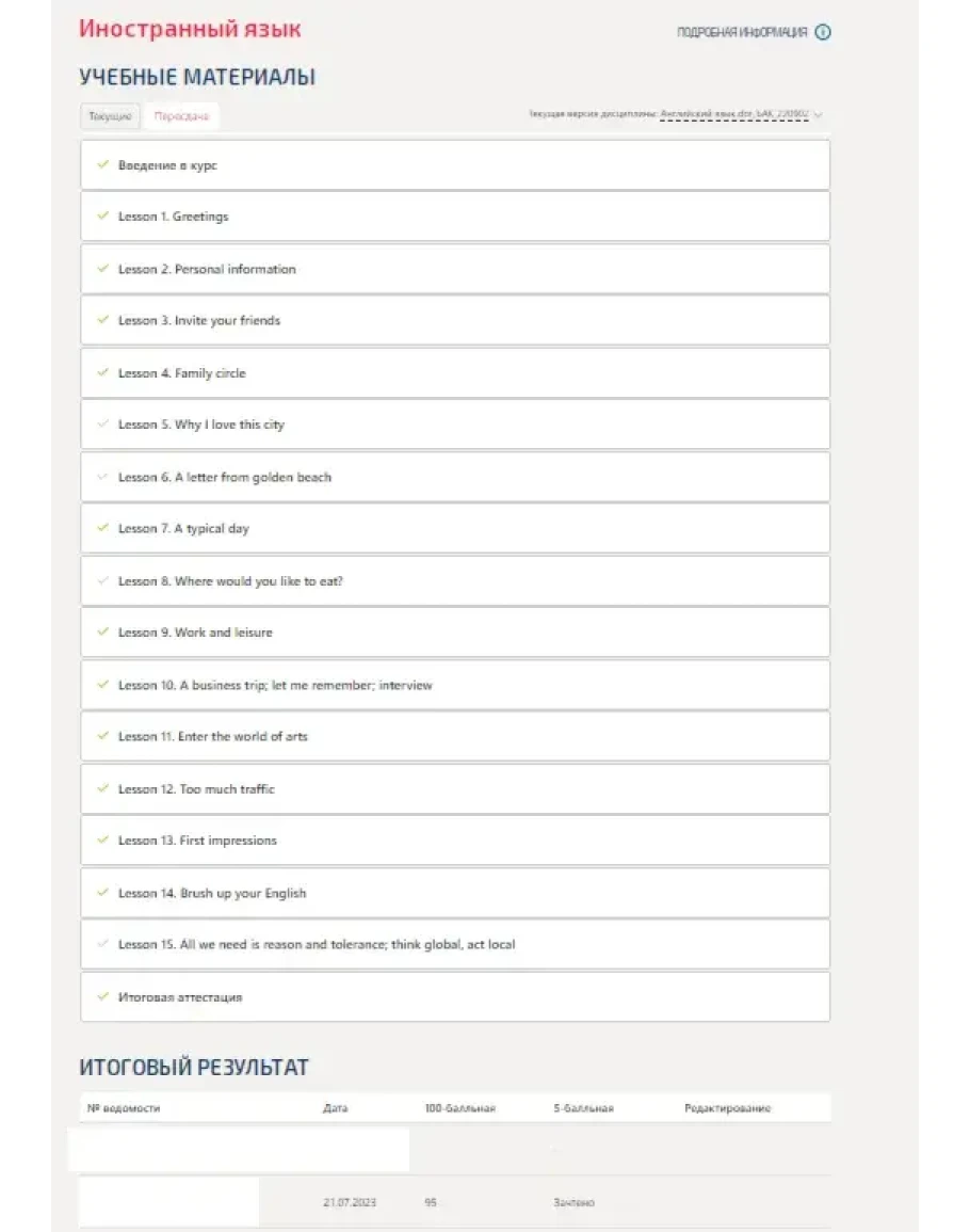 Иностранный язык,темы 1-15.Итоговый тест.Синергия/МТИ