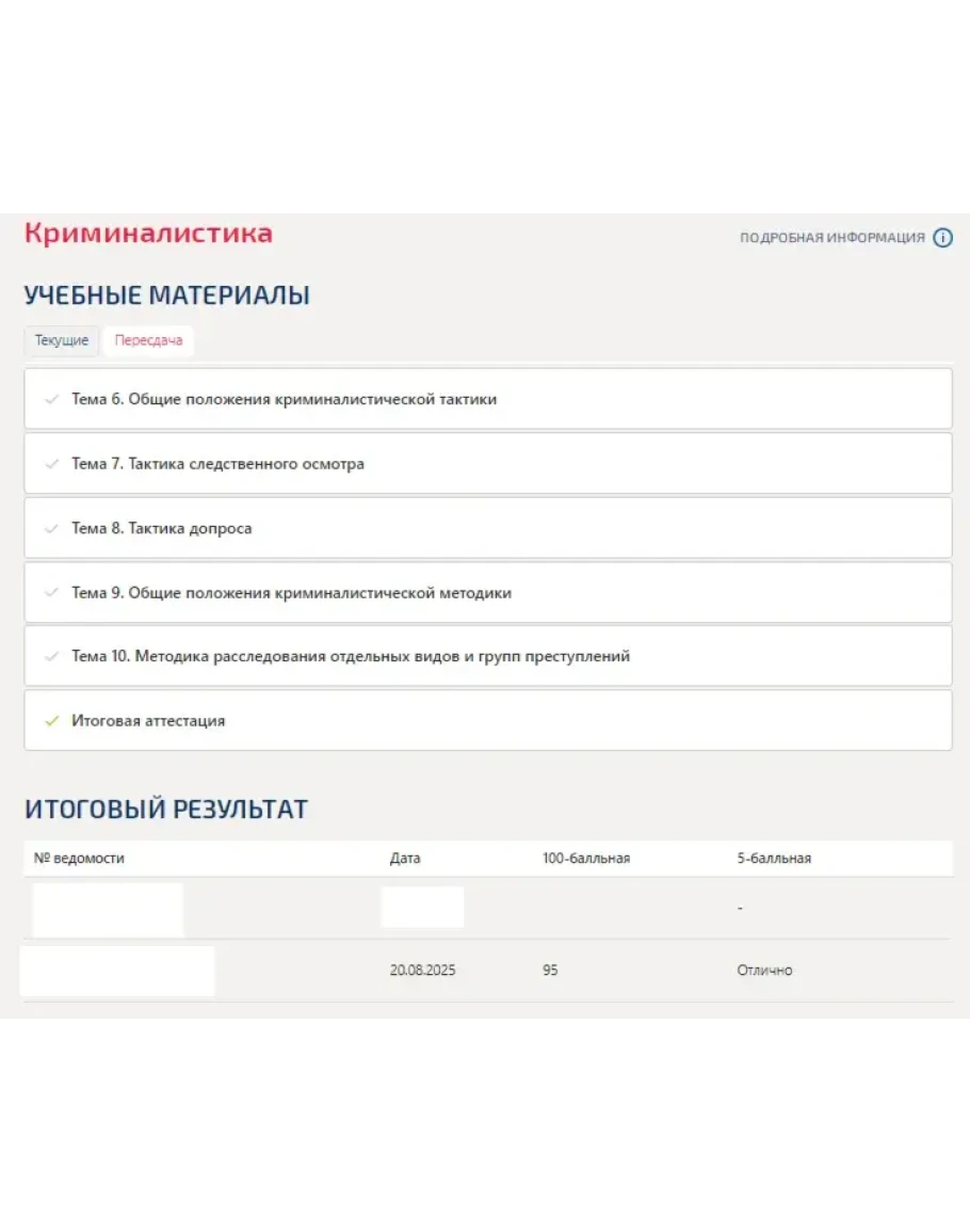 Криминалистика (Темы 6-10) Итоговый тест Синергия 2025г