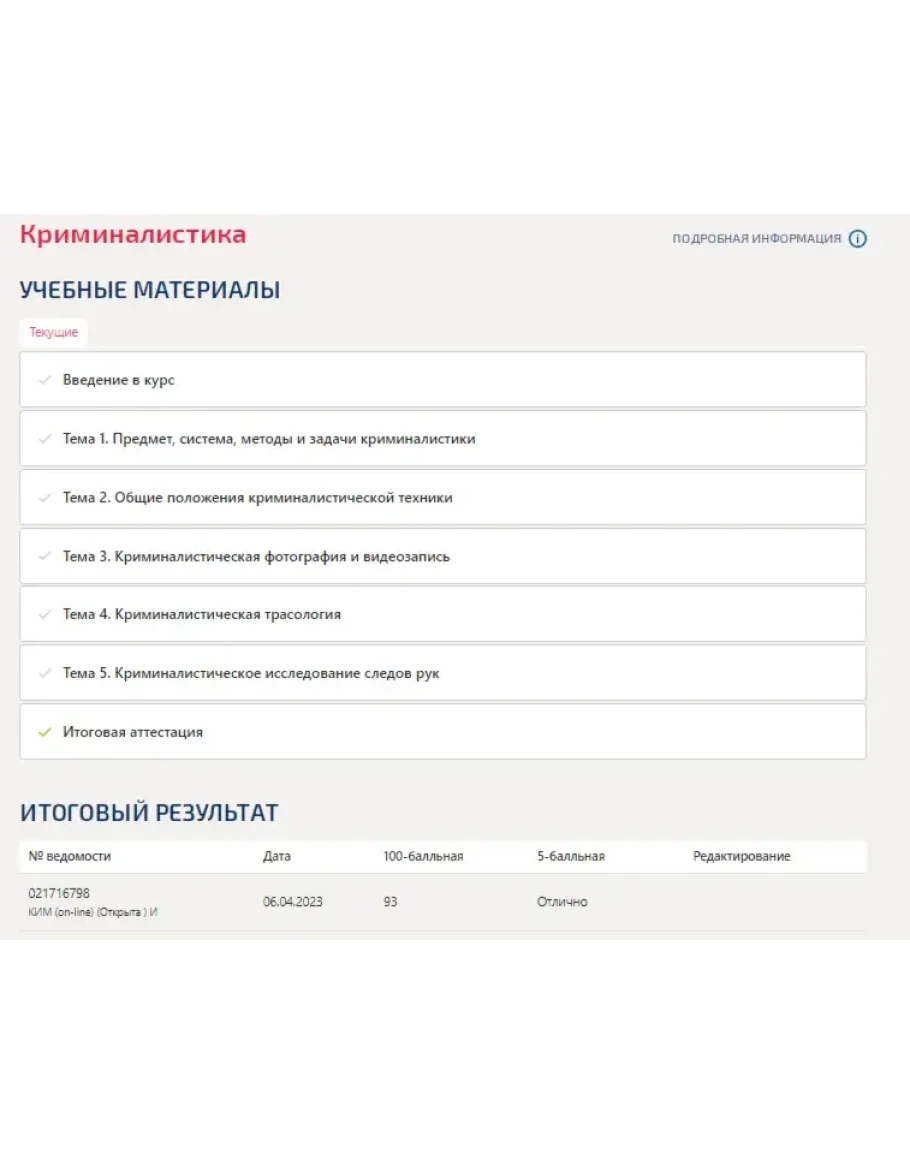 Криминалистика. Тест Синергия 2023г ( 58 вопросов, Итоговый и промежуточные)
