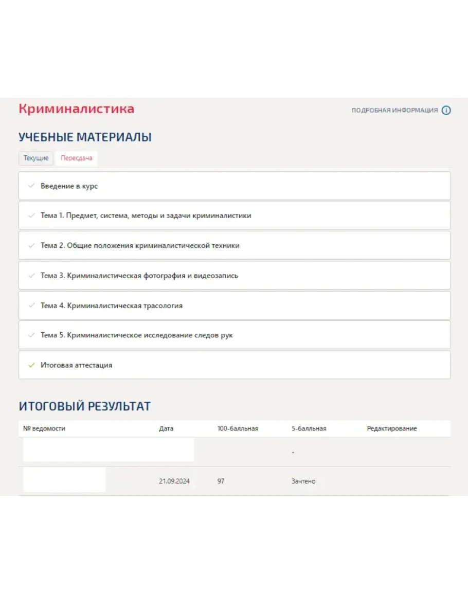 Криминалистика.Тест Синергия/МТИ 2024г. (97 баллов)
