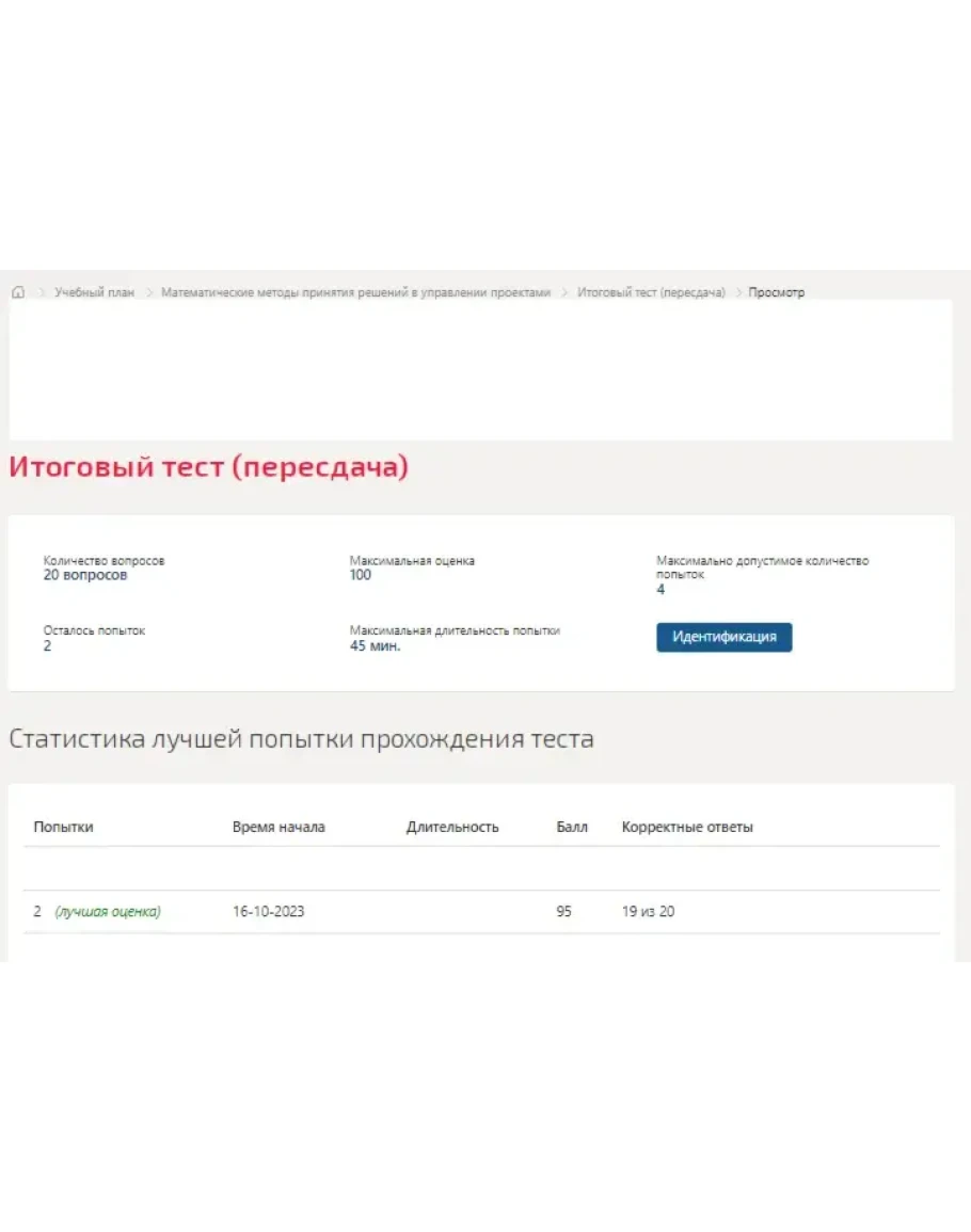 Сдано в 2023году на 95 баллов. Верно 19 из 20 вопросов, скриншот с отметкой прилагается к работе.