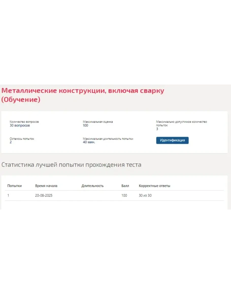 Металлические конструкции, включая сварку.Тест МТИ