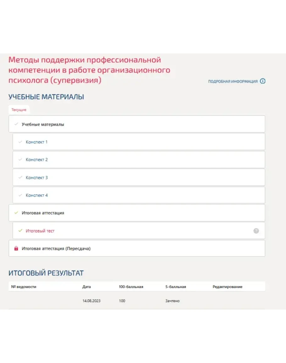 Методы поддержки профессиональной компетенции в работе организационного психолога (супервизия).Итоговый тест Синергия/МТИ 2023г