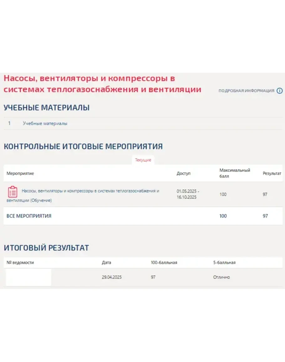 Насосы, вентиляторы и компрессоры в системах теплогазоснабжения и вентиляции.Тест Синергия/МТИ 2025г.(97 баллов)