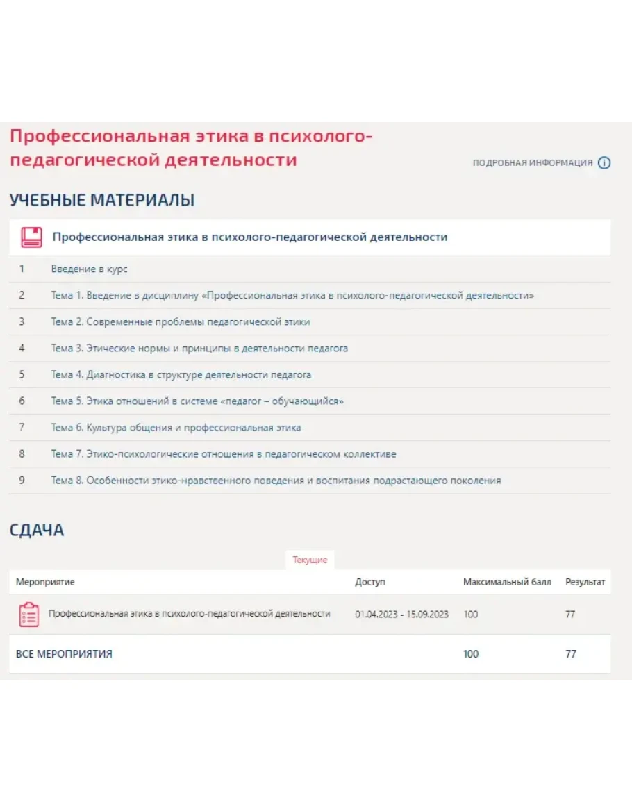 Профессиональная этика в психолого-педагогической деятельности.Тест Синергия/МТИ 2023г.