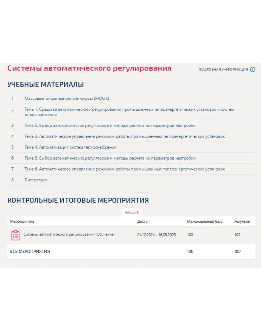 Системы автоматического регулирования.Тест Синергия/МТИ