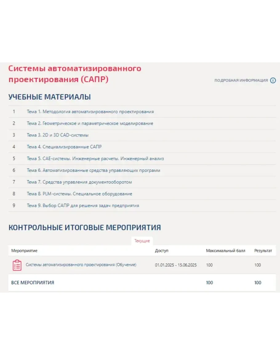 Системы автоматизированного проектирования (САПР).Тест Синергия/МТИ 2025г