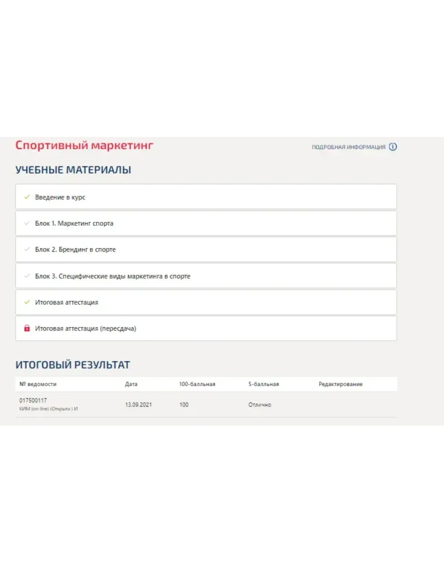 Спортивный маркетинг.Итоговый тест Синергия 100баллов