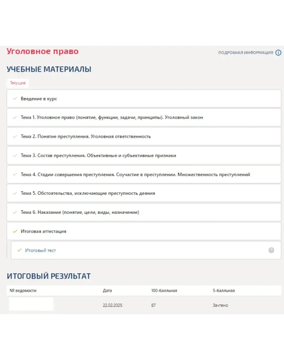 Уголовное право.Итоговый тест Синергия/МТИ 2025г.