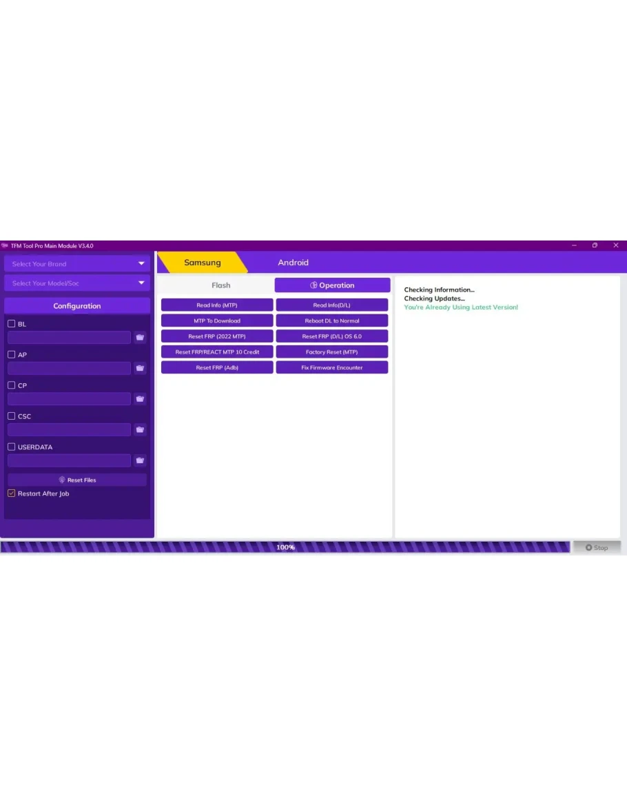 TFM Tool Pro обладает впечатляющим списком функций, начиная от стандартных для отрасли и заканчивая очень сложными, которые вы можете найти только в нашем программном обеспечении. Наши самые популярные функции - это прошивка, сброс настроек к заводским, сброс frp, сброс блокировки конфиденциальности, разблокировка сети, разблокировка загрузчика и различные другие проблемы с программным обеспечением.