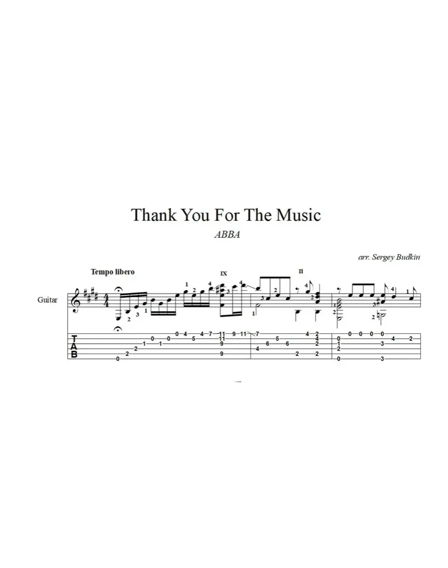 Аранжировка для гитары песни группы ABBA.