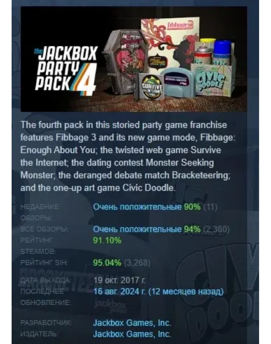 The Jackbox Party Pack 4 АВТОДОСТАВКА STEAM РОССИЯ