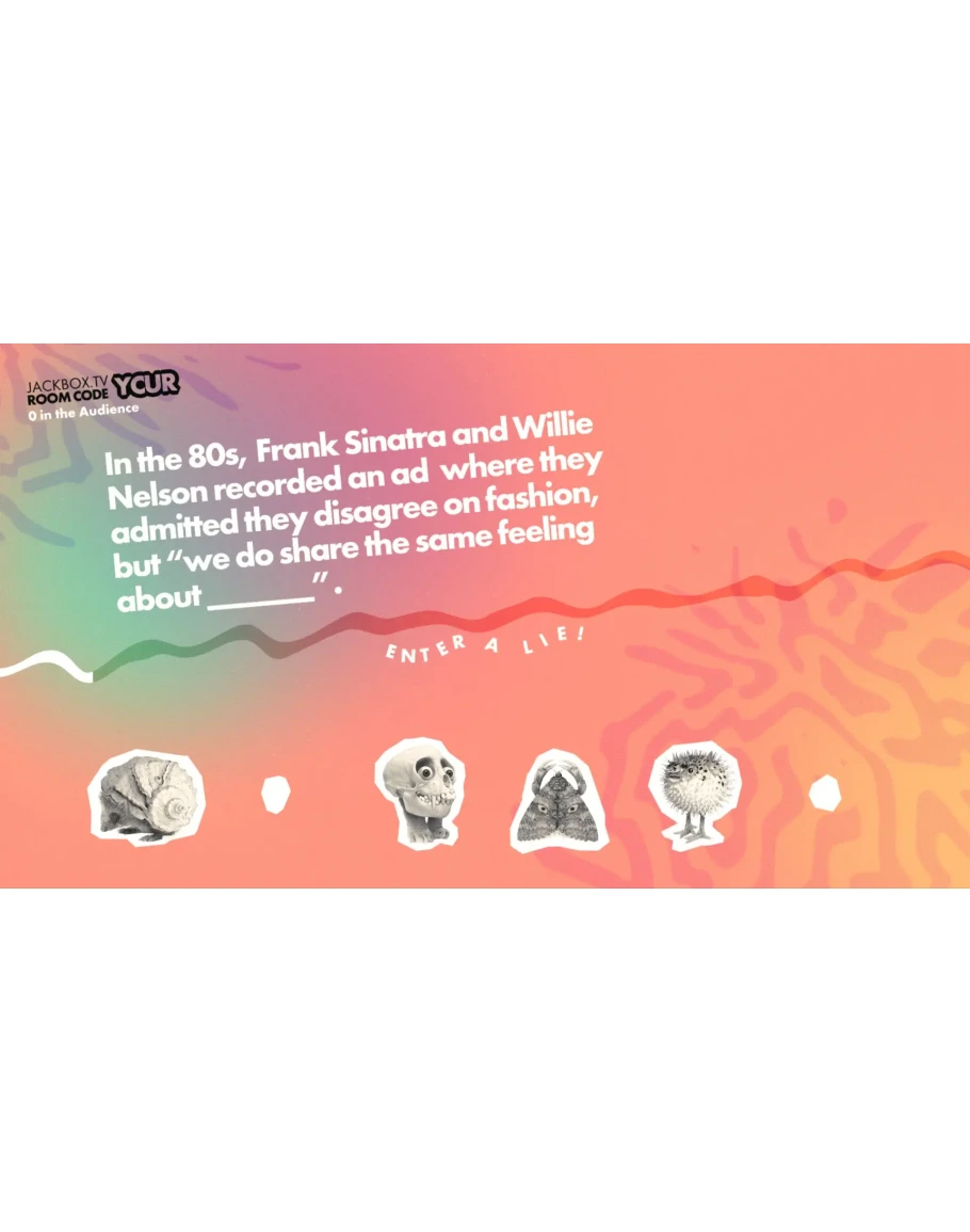 5 новых игр в одном пакете для вечеринок! Fibbage 4, где вам придется блефовать; Quixort, которая станет настоящим испытанием для команды; Junktopia, испытывающая ваше чувство юмора; Nonsensory, в которой нужно угадывать ответы на глупые вопросы; и наконец, реалити-шоу Roomerang.