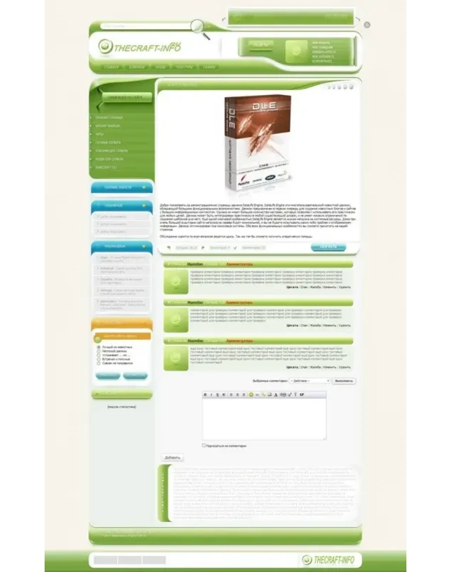 Креативный Thecrafter для DLE который подойдет как под игровую тематику, так и под новостную. Для шаблона Thecrafter тематика не имеет значение. В комплекте по мимо самого шаблона идут исходники логотипа и футера.