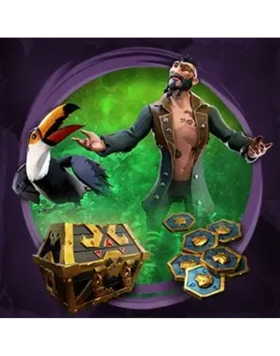 Отправляйтесь бороздить моря с надежным снаряжением бандитского морского волка и не забудьте про яркую эмоцию В набор Инструменты тукана входят питомец Яркоклювый тукан паруса сабля мушкетон банджо барабан повязка на глаз деревянная нога камзол и штаны бандитского морского волка эмоция Пузотряска 550 древних монет и бонус в размере 10 000 золотых для покупок в форпостах
