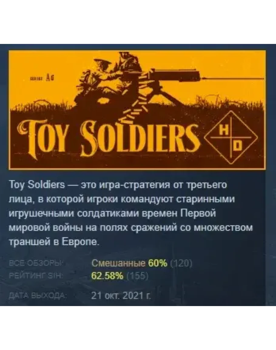 Toy Soldiers: HD АВТОДОСТАВКА STEAM РОССИЯ