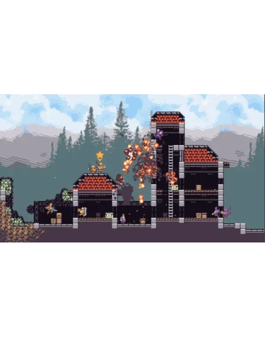 Listen to a relaxing feel-good gypsy jazz soundtrack as you watch your screaming enemies ride rockets and explode crashing into walls. Howl with laughter. Repeat.