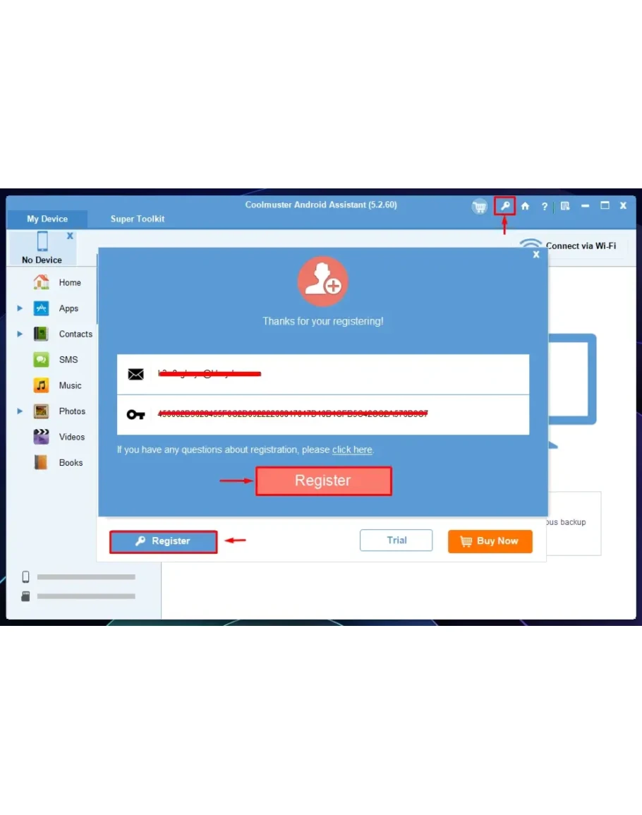 🔐 Следуйте инструкциям во время установки программы, затем перейдите в меню «Регистрация».