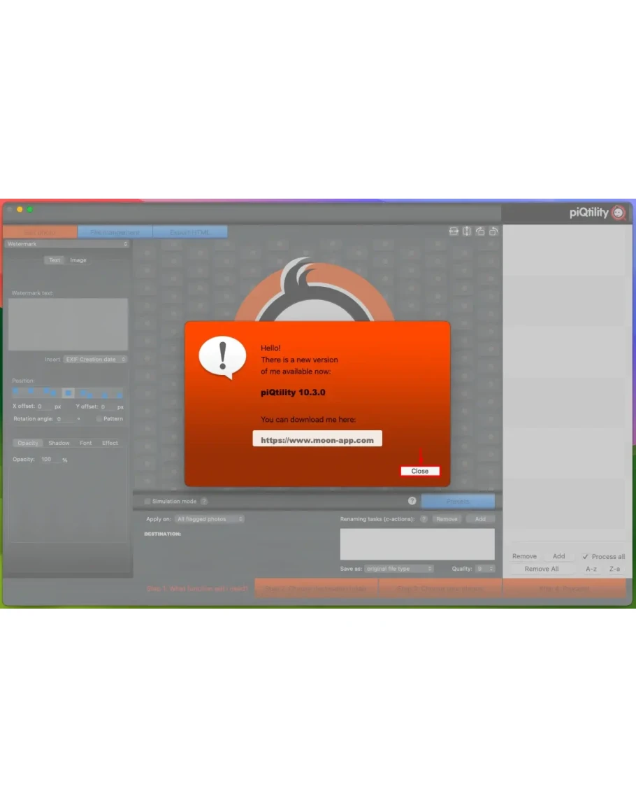 ⚠️ Если вы получаете уведомление о предложении обновления, НЕ НАЖИМАЙТЕ «ОБНОВИТЬ», потому что эта лицензия действительна только для piQtility v9.3.0. ⚠️