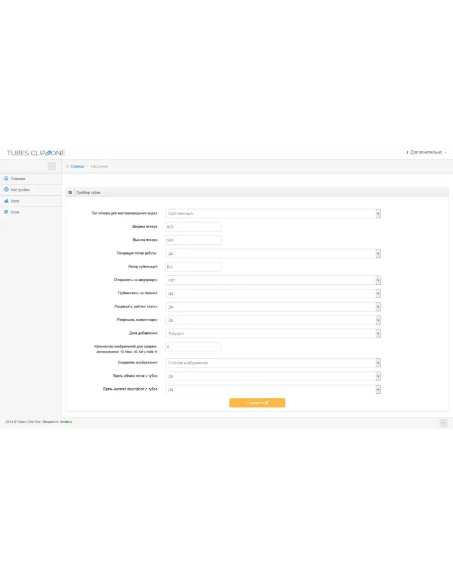 Tubes Clip One - это инструмент для парсинга данных, необходимых для создания и наполнения адалт видео сайта. Tubes Clip One парсит данные с крупных adult-сайтов и имеет ряд полезных функций.