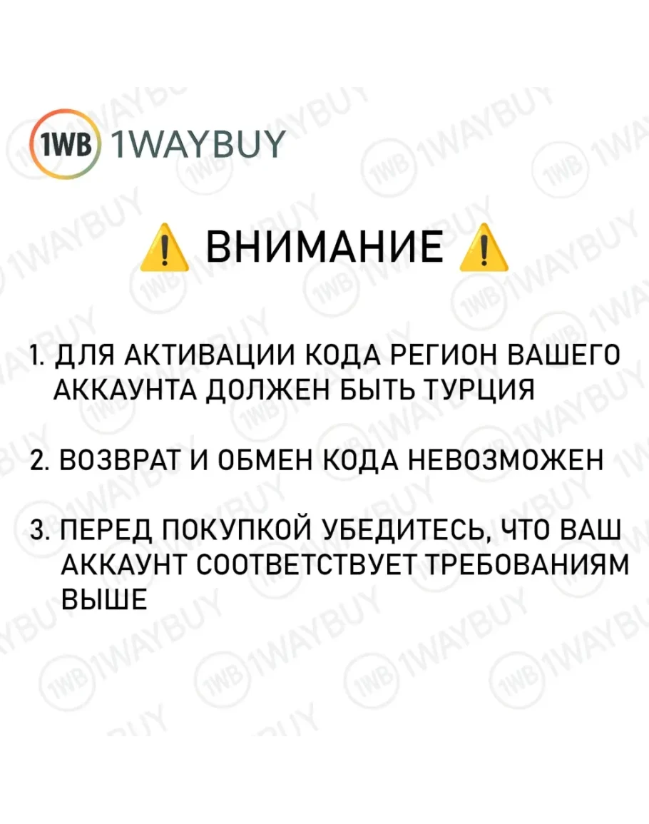 🔴 Возврат полученного вами кода невозможен. Перед покупкой обязательно убедитесь, что ваш аккаунт соответствует требованиям выше.