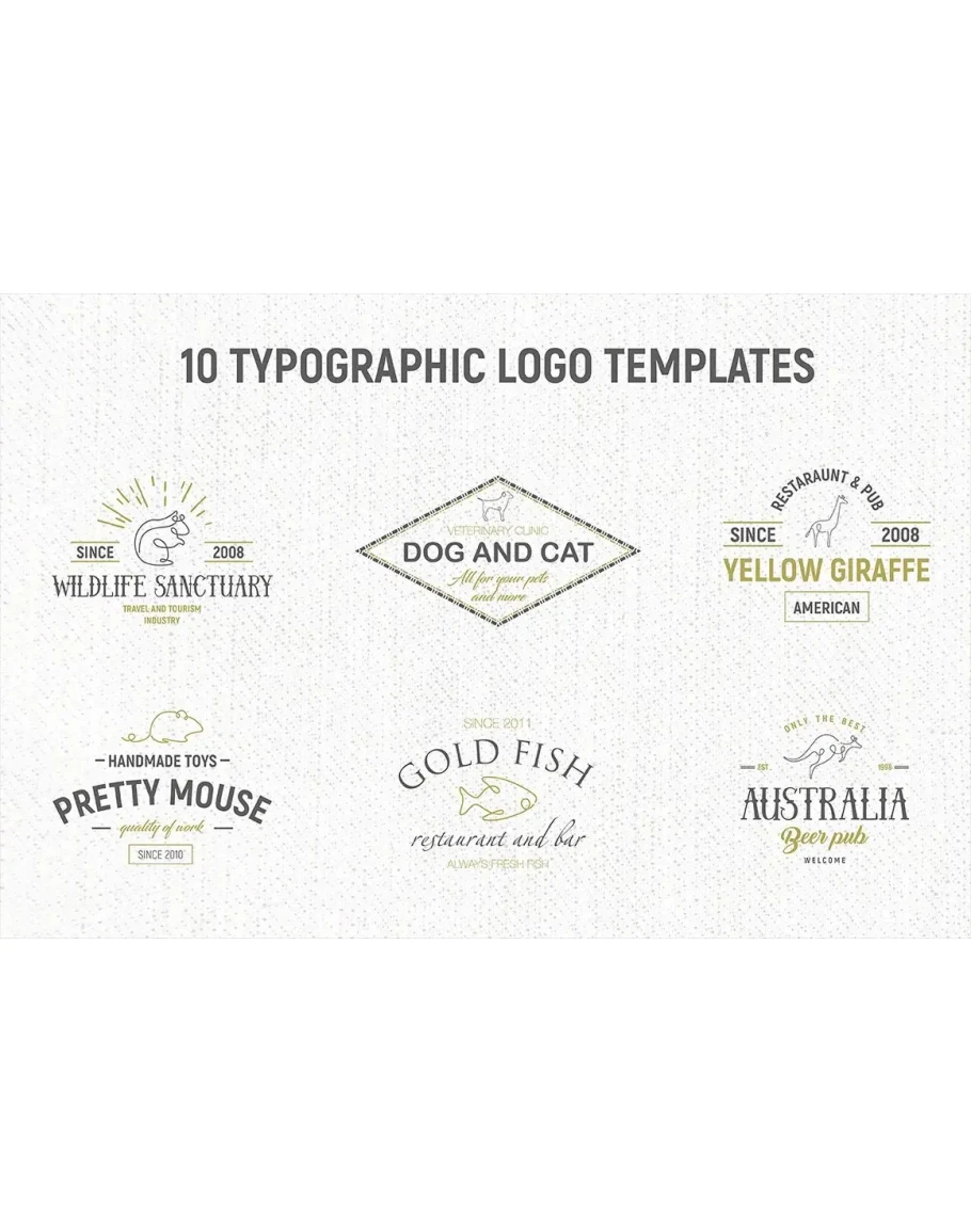 Эта удивительная высококачественная коллекция из 10 элементов логотипа животных и 10 типографских логосов для логотипов поможет вам создать креативный и профессиональный логотип для вашей коммерческой идентификации.
