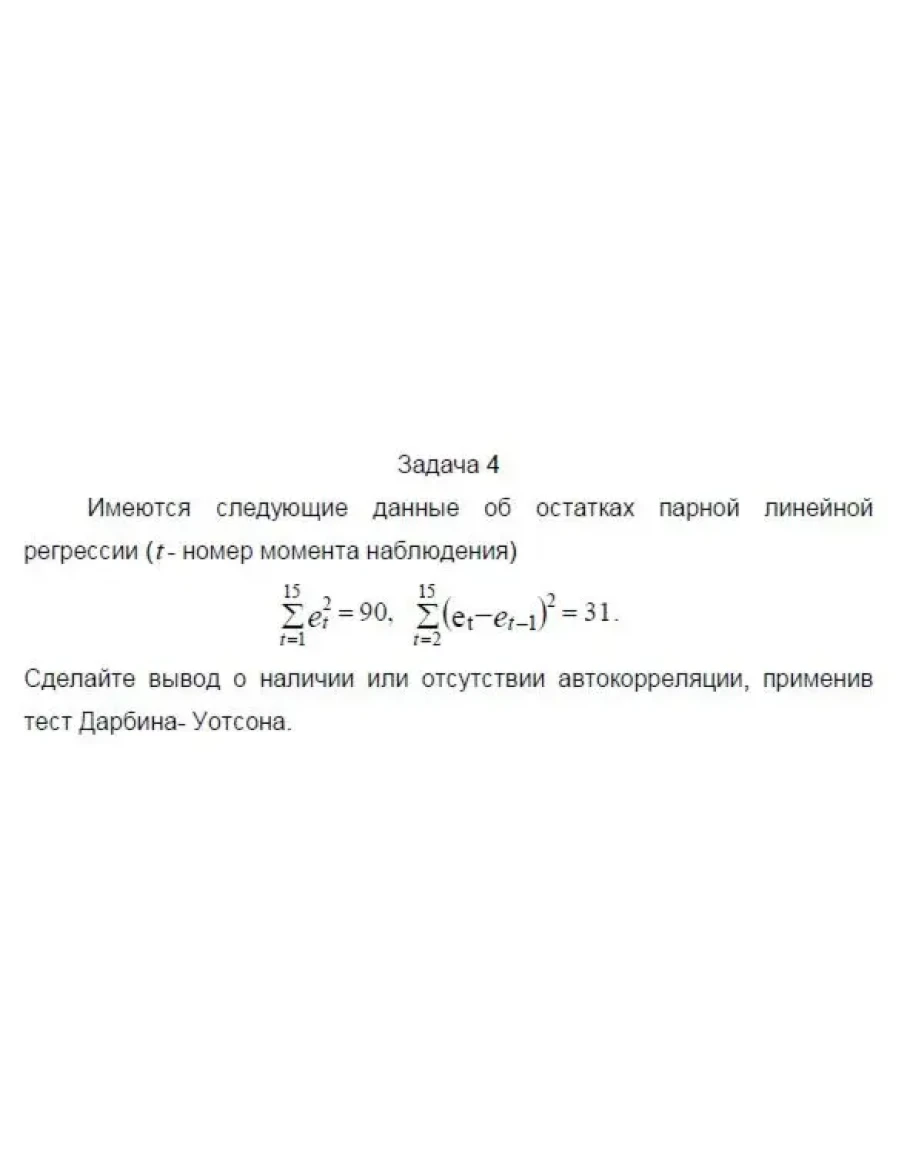 Сделайте вывод о наличии или отсутствии автокорреляции, применив тест Дарбина- Уотсона.
