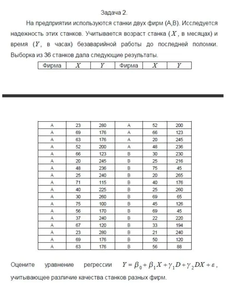 Оцените уравнение регрессии , учитывающее различие качества станков разных фирм.