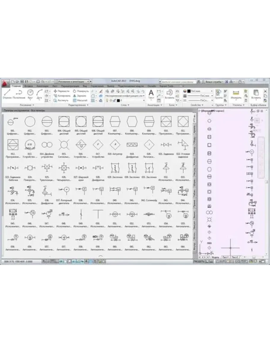 Элементы для удобства собраны в инструментальную палитру блоков AutoCAD 2010 .