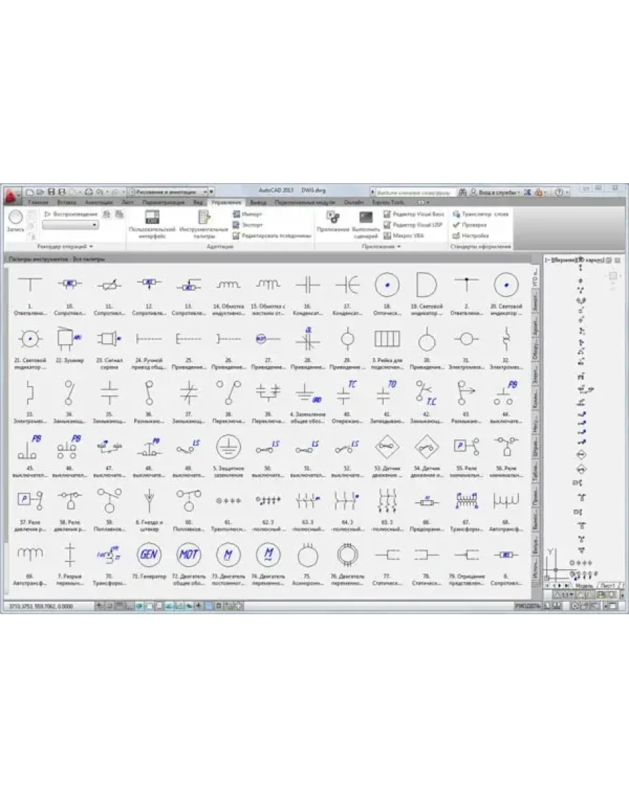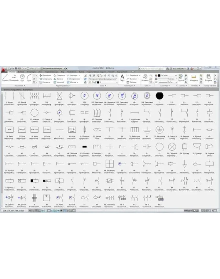 Коллекция элементов, условно-графических обозначений используемых при проектировании и чтении схем систем электроснабжения по зарубежным стандартам.