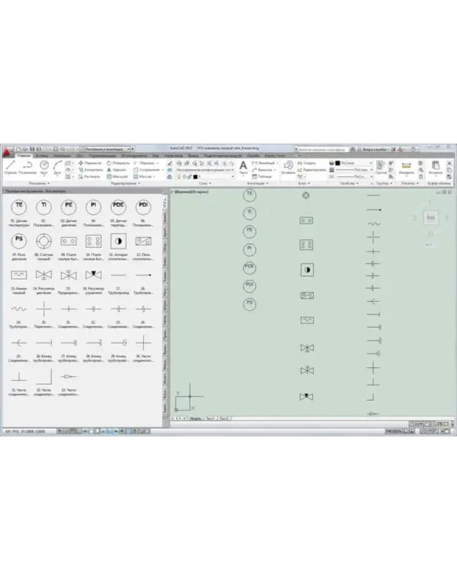 Коллекция условно-графических обозначений для проектирования систем газоснабжения.