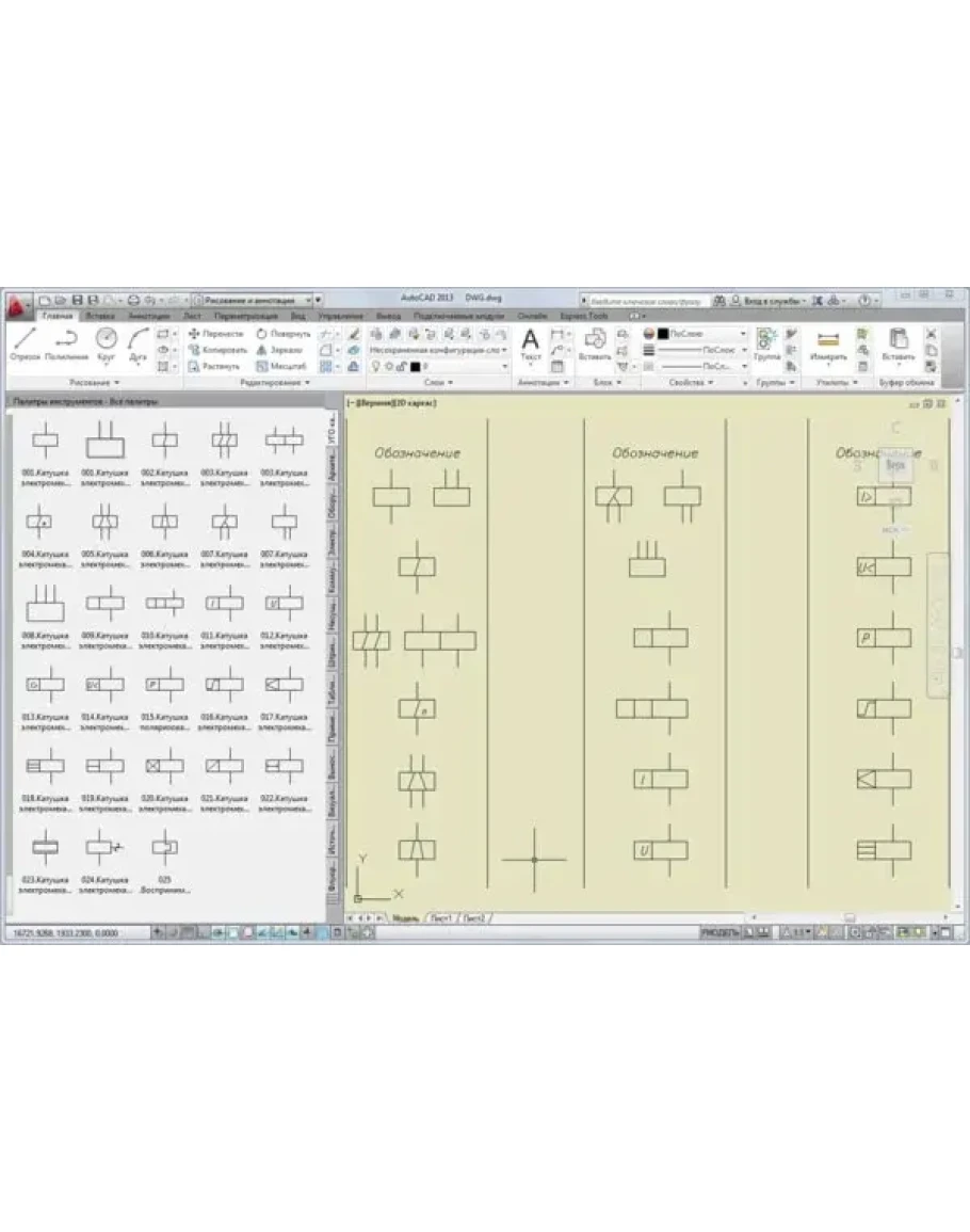 Элементы для удобства собраны в инструментальную палитру блоков AutoCAD 2010 .