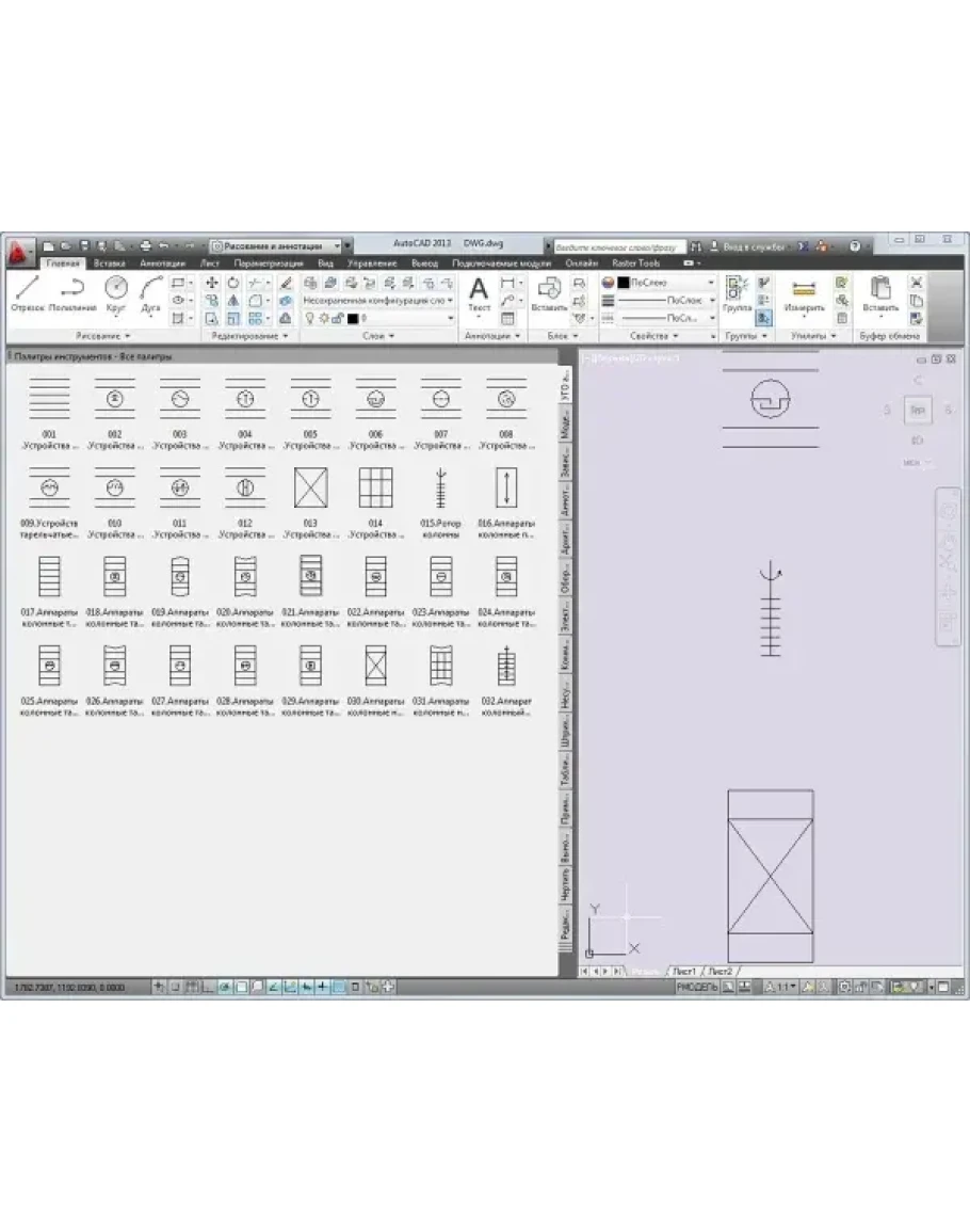 Элементы для удобства собраны в инструментальную палитру блоков AutoCAD 2010 .