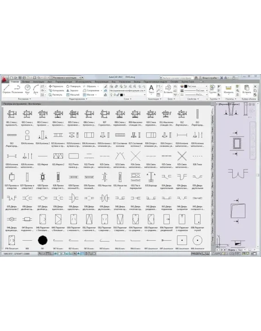 Элементы для удобства собраны в инструментальную палитру блоков AutoCAD 2010 .